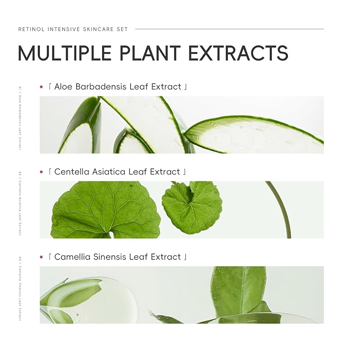 - 【Skincare Gift Set】This 5 PCS traval skincare set routine contains our Retinol Serum, Moisturizer, Eye Cream, Cleanser, Toner,. Our skin care sets for women contains a variety of plant essences, which can effectively repair damaged skin, smooth wrinkles and fine lines, shrink pores, and make skin moisturizing.