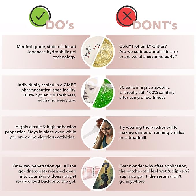 - Moisturizing & Hydrating: Our eye gel pads deeply hydrate and lock in moisture with a special gel that keeps ingredients in your skin, not on the pad. They provide a cooling and soothing feeling, helping to refresh tired eyes and leave your skin soft and hydrated.