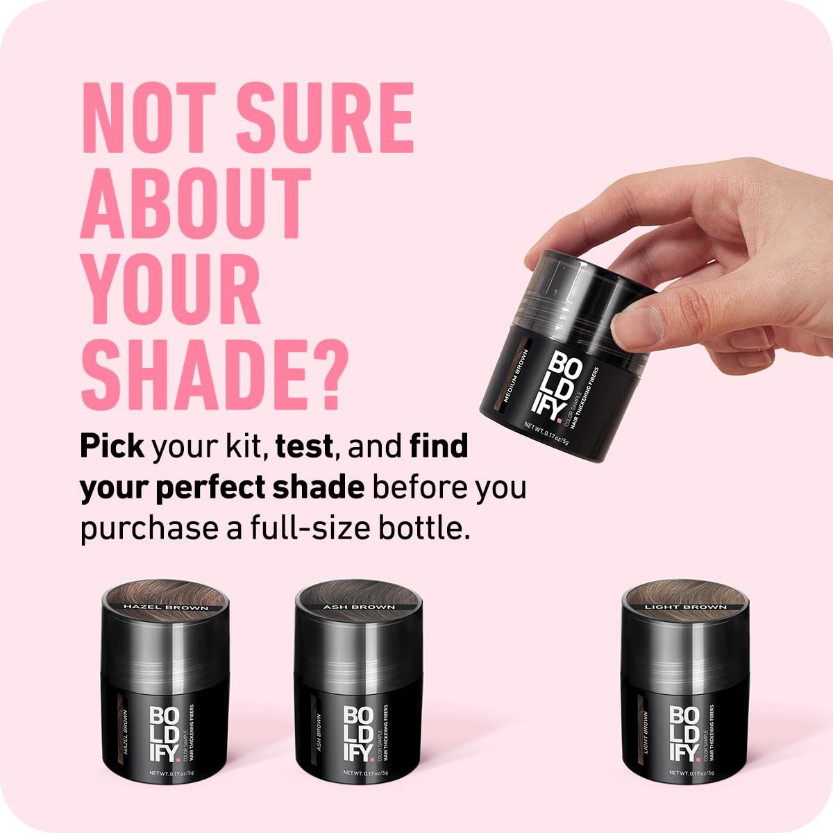 Boldify Hair Fibers Color Sample Kit - Fill In Thinning and Fine Hair for an Instantly Fuller, Thicker Look - 14 Shades for Women & Men - Grays