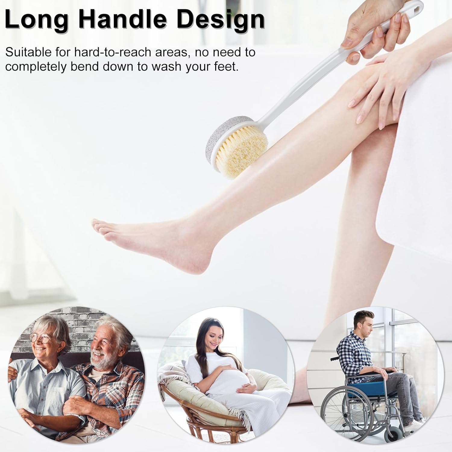 - Long Handle Design: The 14-inch long handle allows for comfortable use and easy reach to the bottom of feet. It has a hanging hole for easy storage. Our foot pumices is a perfect gift for seniors, pregnancy and people with back or legs pain etc.