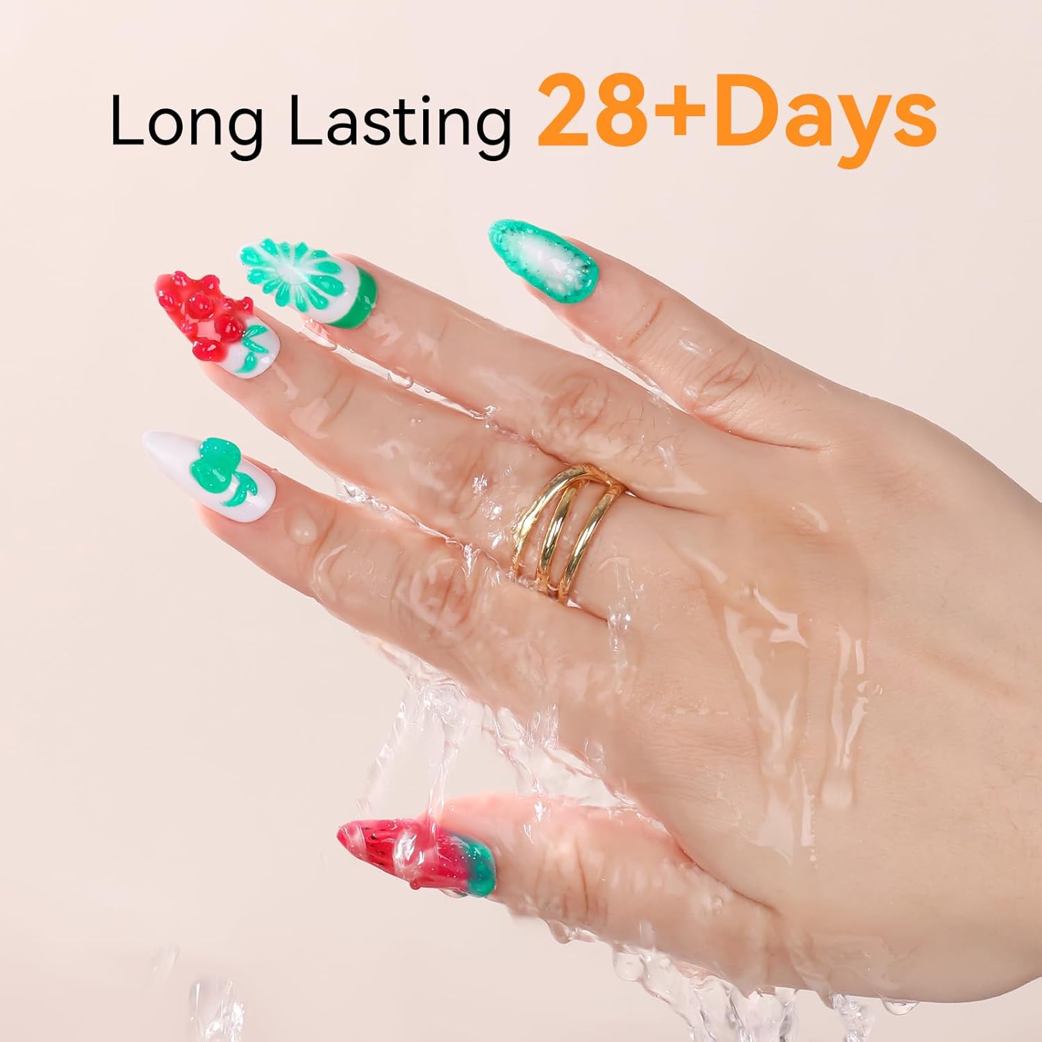 - Ideal Gift: A perfect surprise for any occasion, whether it's Saint Patrick's Day, Valentine's Day, Christmas, Weddings, Halloween, or other special events. The 3D nail gel is ideal for creating 3D fruit slice designs and is a must-have for both professional nail salons and DIY nail enthusiasts.