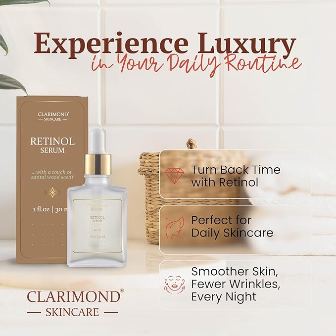 CLARIMOND Retinol Multi-Peptides Serum for Face – 2.5% Resurfacing Retinol and Hyaluronic Acid Serum with Niacinamide & Aloe Vera for Anti-Aging, Brightening, Wrinkle Reduction & Dark Spot Treatment