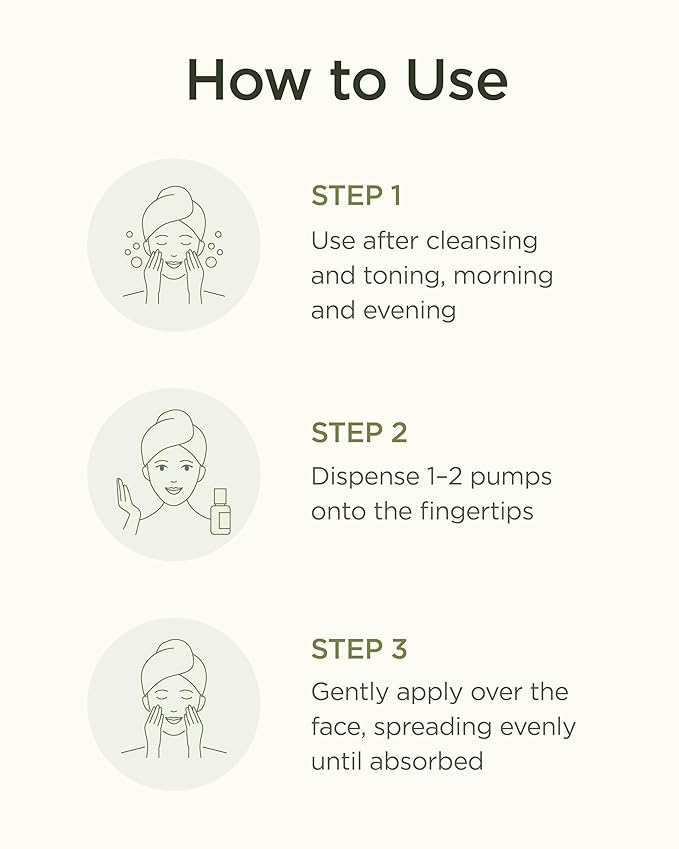 - HOW TO USE – Apply 1–2 pumps after cleansing and toning, both morning and evening. Gently spread over the face until fully absorbed. Follow with moisturizer or sunscreen during the day for best results.