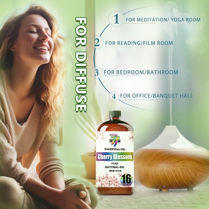- METHOD AND USE RANGE:Mix Cherry Blossom Essential Oil with water (recommended ratio is 1:10) and add a few drops into an aroma diffuser to create a relaxing and pleasant atmosphere; it can also be used to make candles, soaps, lotions, and homemade cleaning products; Other Applications: humidifiers, aroma diffusers, home spa treatments, cleaning products, massages, yoga, and automotive diffusers.