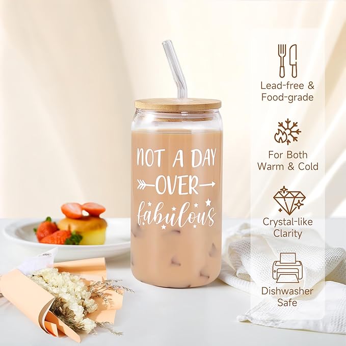 - High-quality Glass Cup: Aside from the Premium Spa Kit, our gift box for women also comes with a 16oz glass bottles, sturdy, lightweight, lead-free & BPA free. The quote "Not A Day Over Fabulous" on the glass adds a personal touch, suitable for keep cold & warm beverages (≤80 degrees Celsius) for wine, coffee, tea, milk, juice, water etc. making it a perfect gift for her, best friends, moms, wife, girlfriends, sisters, daughters, grandma, aunt, coworkers or teacher