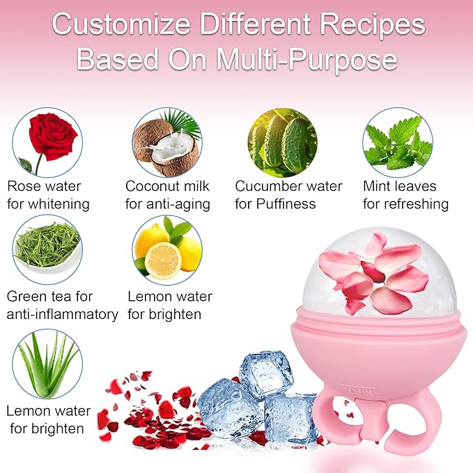 - Unique Finger Ring and Suction Cup Design: Different from the traditional ice roller, our ice face mold has a unique design. Hand ring design: protects your fingers from frostbite while in use, which is more ergonomic. The bottom suction cup design: the facial ice roller is placed more smoothly, which can prevent the face ice roller from being accidentally touched and tipping over causing water leakage.