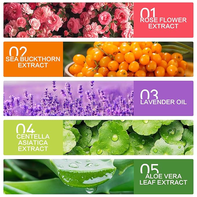 - 【Natural Ingredients】Lavender oil, Sea buckthorn extract, Roseflower extract, Centella asiatica extract, Aloe vera leaf extract, Maintain skin health and balance epidermal pH for healthier skin.