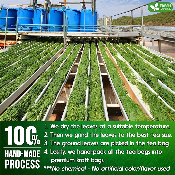 - ☘️ HORSETAIL TEA BAS MADE BY A HAND-MADE PROCESS: Horsetail leaves are picked at their flavorful/colorful peak and naturally sun-dried to perfection. We hand-select only the premium leaves of Horsetail for the utmost quality. Then we grind the herbal leaves into the best tea size. Next, we immediately pack it in eco-friendly tea bags. Lastly, we pack the tea bags into food-grade kraft bags for ultimate freshness.