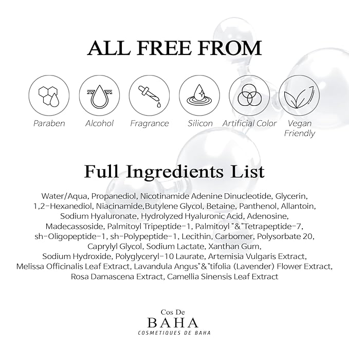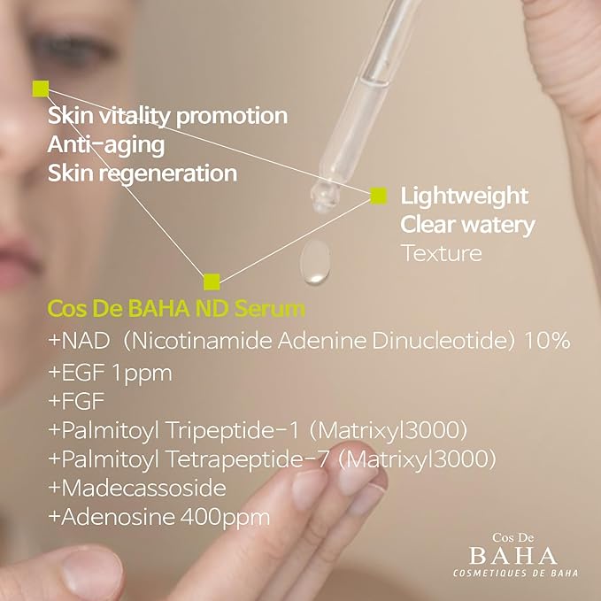 - Special Ingredients : NAD+, Hyaluronic Acid, Matrixyl, Peptides, Botanical Extracts
