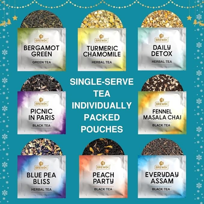 BREWIX, Tea Advent Calendar 2024 | 24 Loose Leaf Teas - Luxury Gift Box | Selection of 24 Delightful Black/Green Teas and Infusions | Christmas Gift Idea for Men and Women