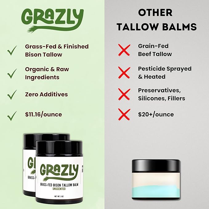 - Deeply Hydrates & Restores Skin Barrier: Grazly Manuka Honey & Bison Tallow Balm helps replenish moisture with nutrient-rich bison tallow for face. Its natural ingredients support the skin barrier, preventing dryness and keeping skin soft, smooth, and hydrated. Absorbs easily without a greasy residue for daily moisture.