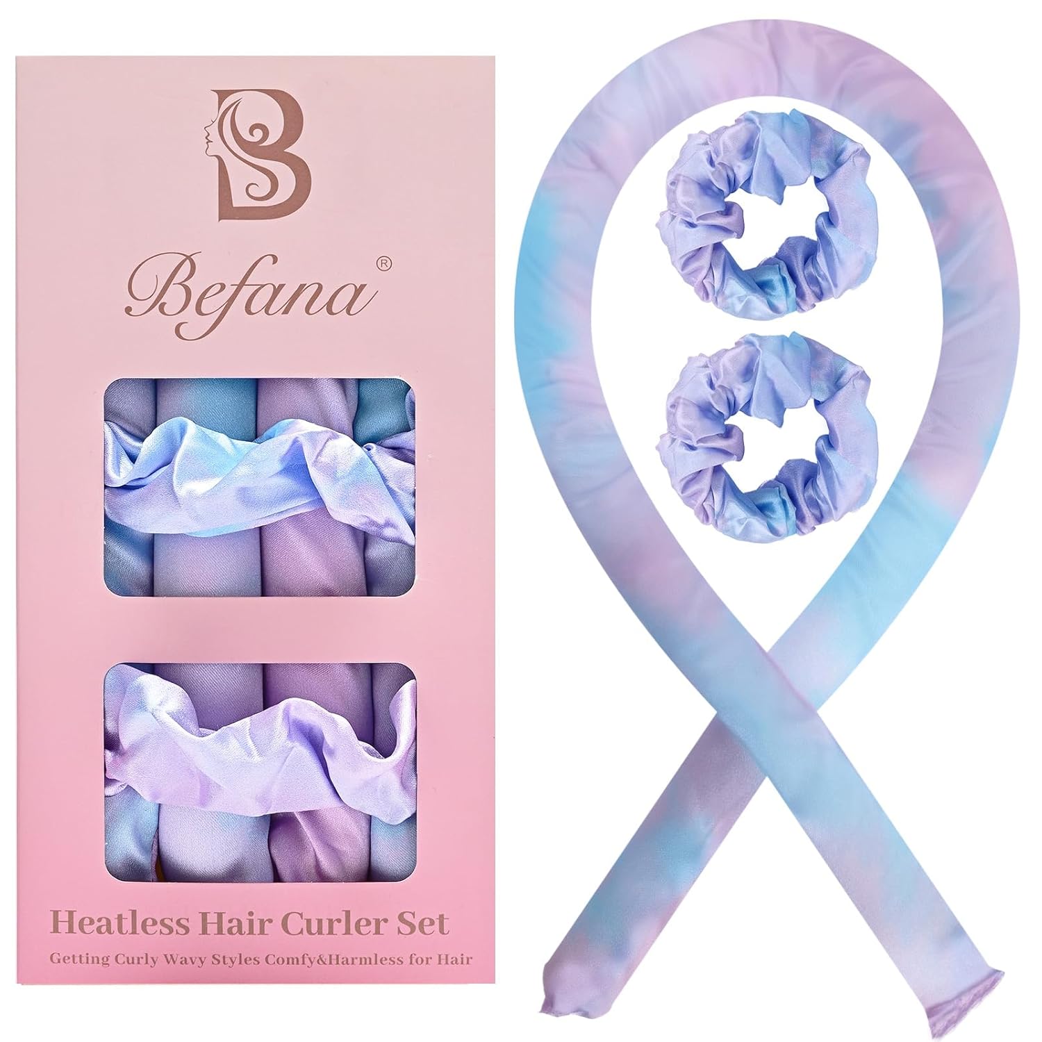 - This no-heat curling headband set includes a curling rod and two satin sleep scrunchies, all covered in high-quality satin fabric.