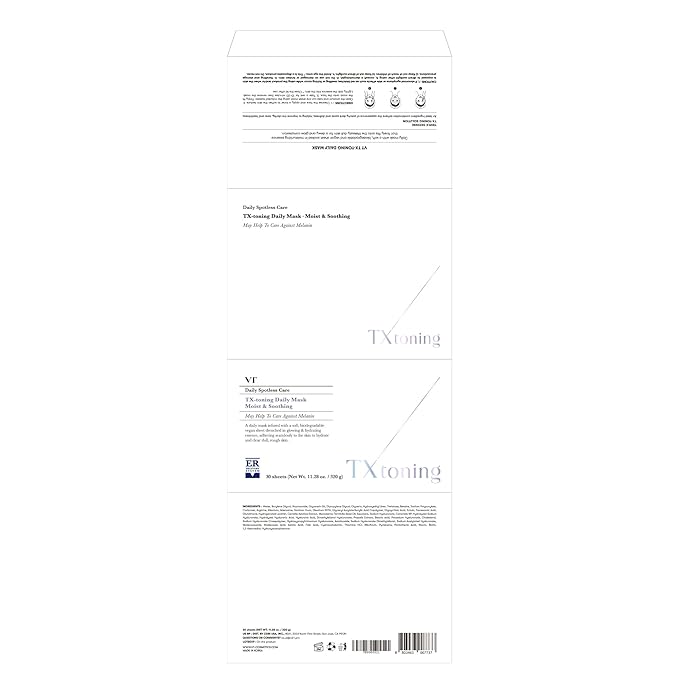 VT COSMETICS TX Toning Daily Mask 30 Sheets, Tranexamic Acid, Niacinamide, Glutathione for Acne Scars, Dark Spots, Hydrating & Glowing Facial Mask, Fragrance-Free, Korean Face Mask