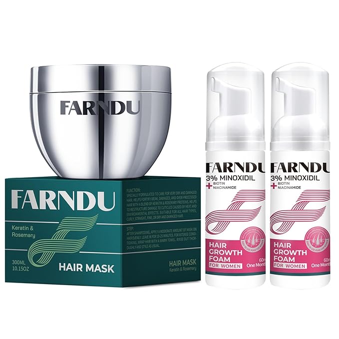 - Deep Repair Damaged Hair: Farndu hair mask is formulated with rich natural nourishing and repairing ingredients such as keratin, collagen proteins, rosemary, Aloe vera leaf water, olive fruit oil and sunflower seed oil, delivers deep repair and conditioning, leaving hair shiny, silky, and revitalized.
