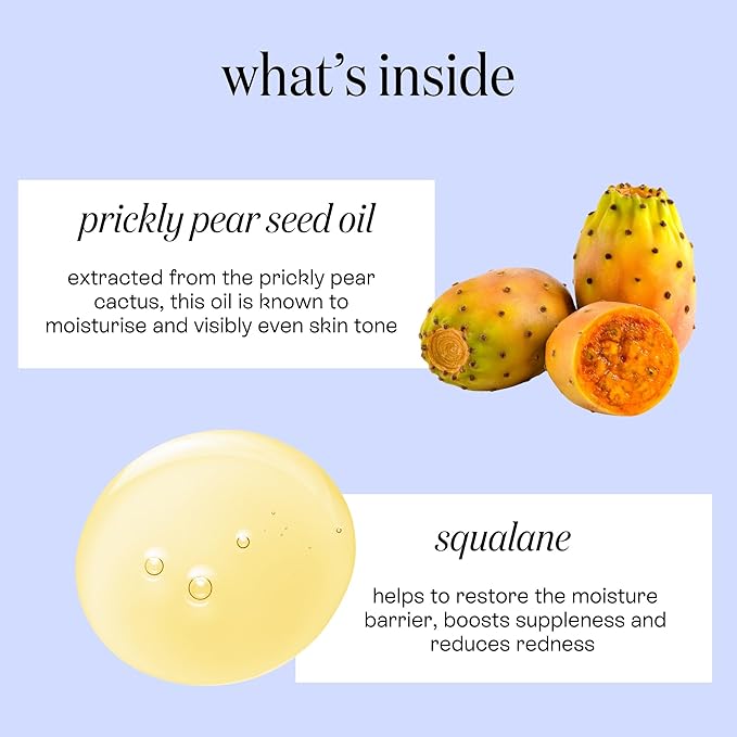 - SUPERCHARGED HYDRATION: Featuring prickly pear seed oil, squalane, and polyglutamic acid, this powerhouse formula supports skin’s natural moisture barrier, helping it feel refreshed.
