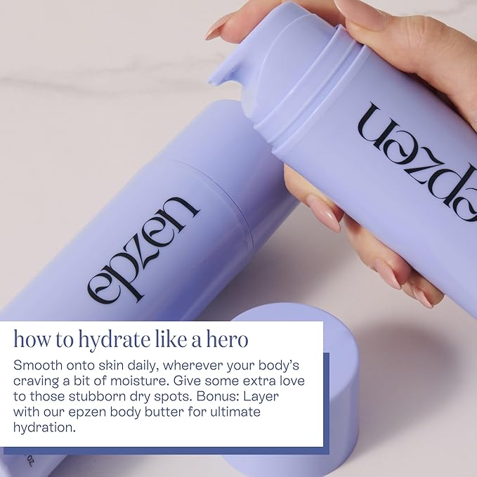 - HOW TO HYDRATE LIKE A HERO: Smooth onto skin daily, wherever your body’s craving a bit of moisture. Give some extra love to those stubborn dry spots. Bonus: Layer with our epzen body butter for ultimate hydration.