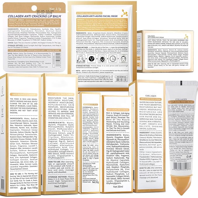 - Collagen Skin Care Set: Our skincare set enriched with collagen ingredients, which moisturize your skin, replenish your skin with collagen and water. It also restores the elasticity and vitality of the skin, making it more hydrated and smooth