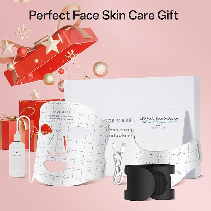 - What You Get: Red light mask for face and neck, 2 x eye pads, remote control, user manual, exquisite gift box; our worry-free 18-month warranty, lifetime technical support, and friendly customer service.