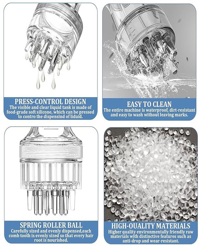 - Easy to Use: hair oil applicator for scalp After adding liquid, make the ball teeth fit against the scalp and slide back and forth. The medicine will naturally and slowly flow out. If you want to accelerate the liquid outflow rate, simply apply slight pressure on the soft silicone cover with your thumb to double the liquid output.