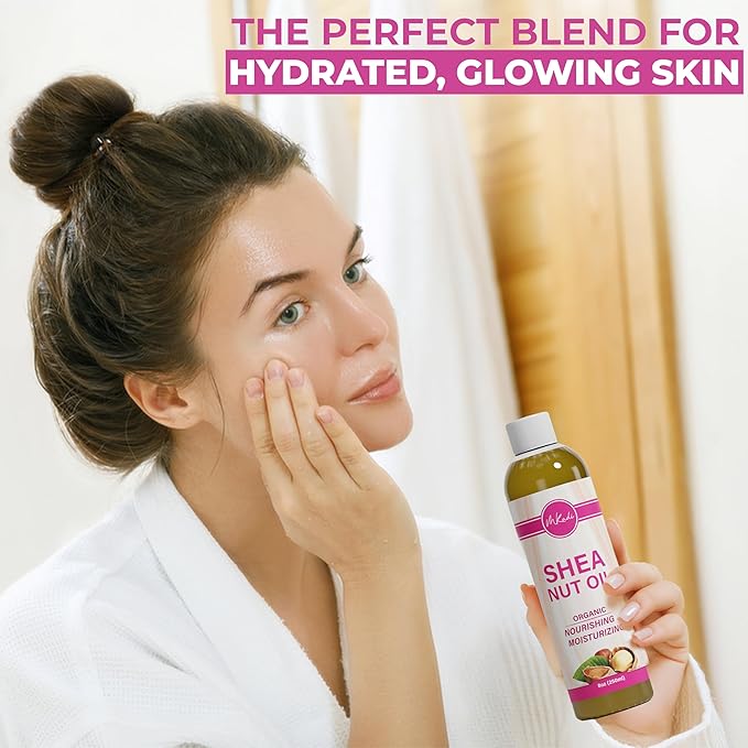 - Nourishing Skin & Hair Oil: Mkadi organic Shea nut hair and skin oil, enriched with vitamins A, E, F, and essential fatty acids, deeply hydrates the scalp and skin. Say hello to long-lasting moisture and vitality with our body glow oil for skin!