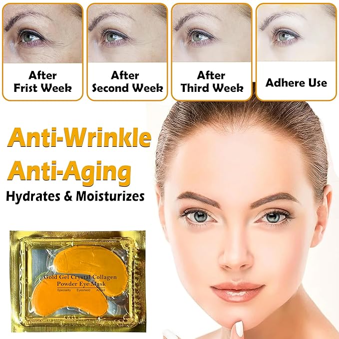 - 24k Gold Eye Mask: 24K active gold ingredients are added, which can deeply repair the eye skin and promote skin circulation, and effectively improve fine lines, crow-feet lines and visibly reduce dark circles, puffiness, eye bags,signs of tiredness and sleeplessness