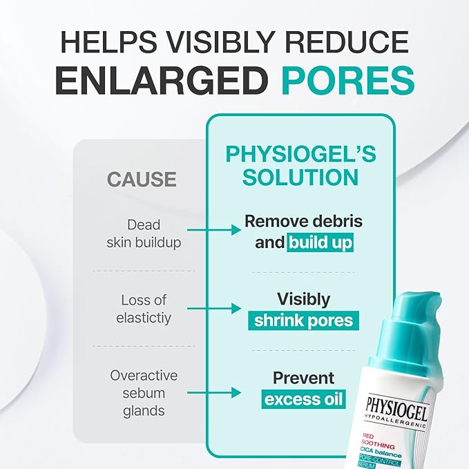Physiogel Red Soothing CICA Balance Pore-Control Serum, Niacinamide Facial Exfoliant for Blackheads, Pore Minimizer Serum for Face, Korean skin care, 1.69 fl.oz