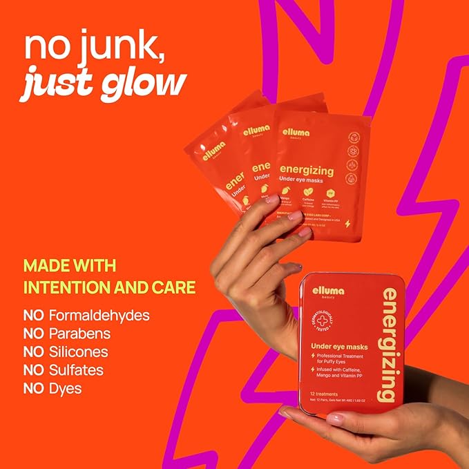 - More than just a lightning bolt — our formula delivers! Hit snooze a few times? No worries! Our game-changing under eye masks also contain Hydrolyzed Collagen, Mango Fruit and Vitamin PP to deeply hydrate and refresh, leaving your under-eyes soft, supple, and ready to slay.