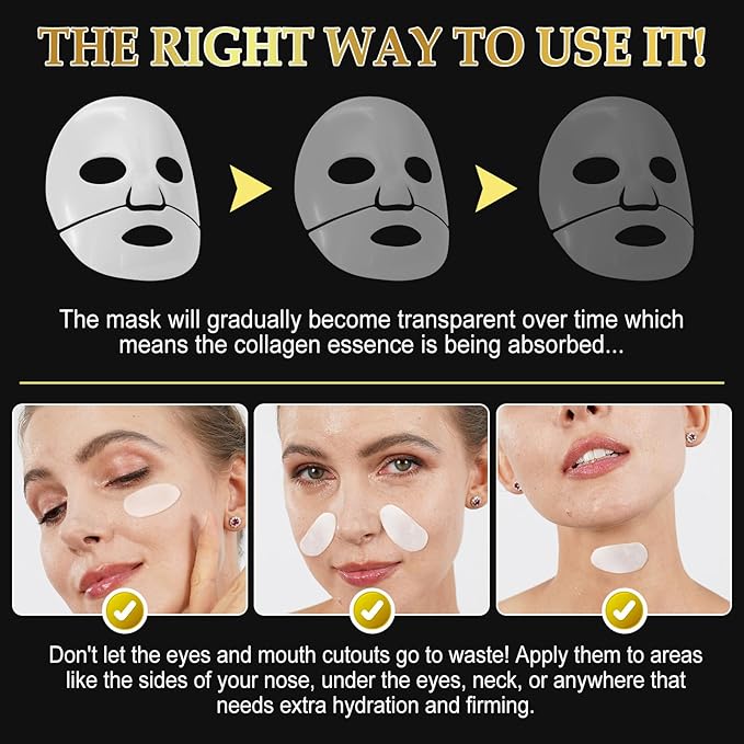 - ✨【Deep-Absorbing Collagen】----- Harnesses 243Da collagen for deep absorption, ensuring firmer, smoother, and more resilient skin. Each 34g mask offers the same strength as a 30ml bottle of essence. Turns transparent upon absorption, maximizing ingredient penetration and effectiveness.