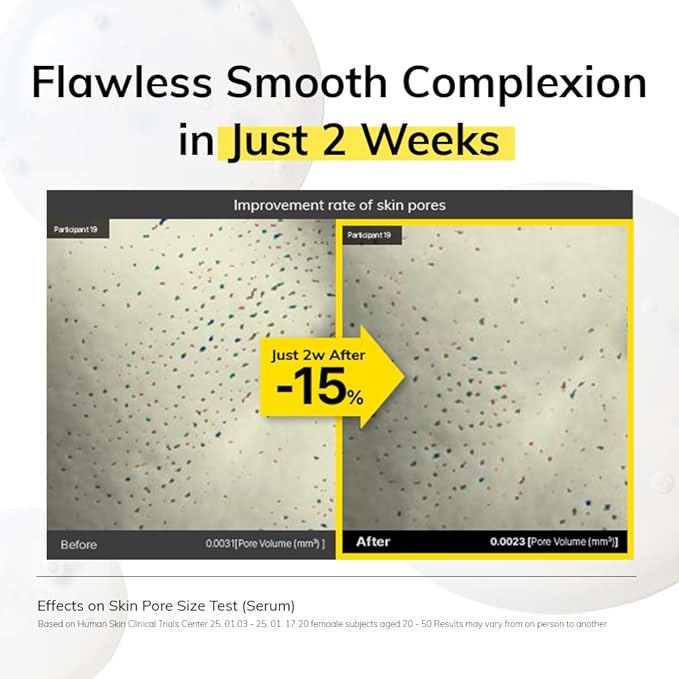 - [CLINICALLY PROVEN RESULTS OF THIOCTIC ACID + NIACINAMIDE 5%] Improvement rate of pigmentation: 10.80% + Improvement rate of skin itching due to dryness: 41.91% + Improvement rate of skin pores: 15.00% after just 2 weeks use. Achieve clear, glowy skin with a mild formula. *Clinical Trial Tested by the 'Human Skin Clinical Trials Center.' / Results may vary depending on individual skin.