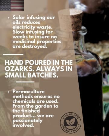 - OUR PROCESS: Totally natural and organic from start to finish. Solar infusing oils reduces electricity waste. We strive to make a quality product and we will not dilute our products with any lower cost fillers and weaken the products.