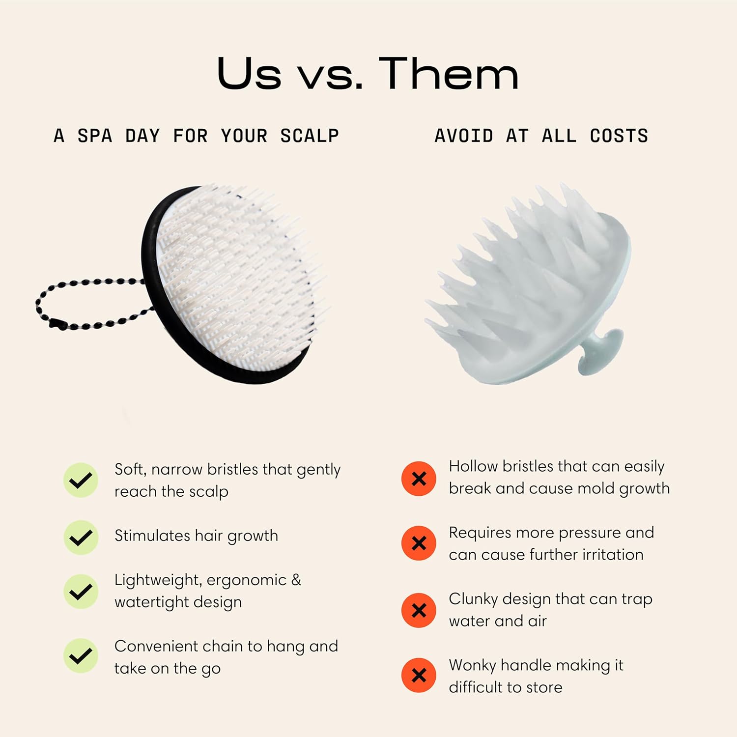 - SCALP SCRUBBER FOR CLEANER, HEALTHIER HAIR: This scalp scrubber gently exfoliates to lift dandruff flakes, product residue, and buildup, leaving the scalp refreshed and balanced. Regular use helps maintain a healthy scalp and supports stronger, healthier-looking hair growth from the roots.