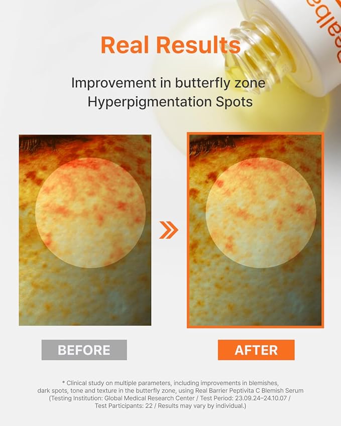 Real Barrier | Peptivita C Blemish Serum | Face Serum for Uneven Skin Tone & Smooth Texture | Vitamin C Face Care for Sensitive Skin | Facial Skin Care Products | Korean Skincare | 1.01 fl oz (30ml)