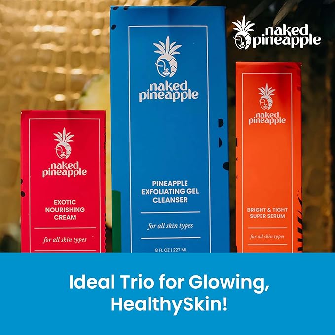- Essential Skincare Trio: The Naked Pineapple Starter Kit includes: Pineapple Renewing Face Wash, Radiance & Tight Super Serum, & Exotic Nourishing Cream, designed to cleanse, hydrate, & nourish your skin.