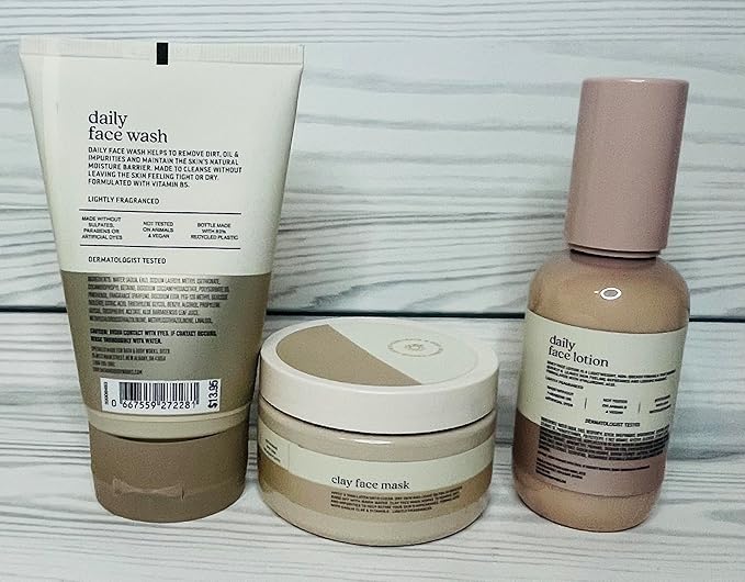 - Includes Daily Face Wash (4 oz), Daily Face Lotion (3.4 oz) and Clay Face Mask (6.5 oz)