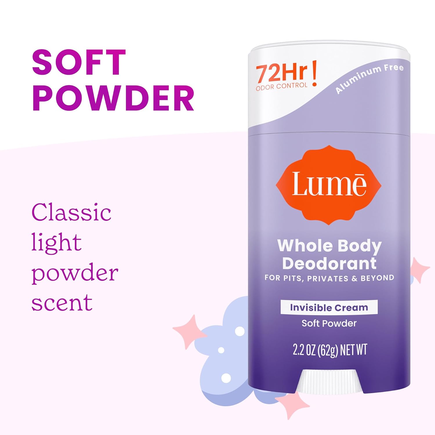Lume Whole Body Deodorant - Invisible Cream Stick - 72 Hour Odor Control - Doctor Developed - Aluminum Free, Baking Soda Free and Skin Loving - 2.2 Ounce (2 pack) (Soft Powder & Clean Tangerine)