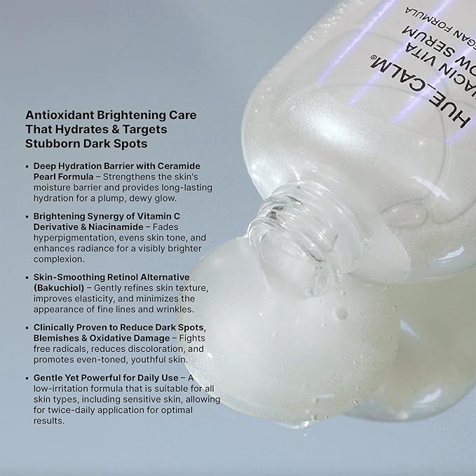 - 💧 Hydration-First Brightening – No More Dryness or Peeling – Many brightening serums leave your skin flaky and irritated. Hue Calm's advanced hydration technology ensures that your skin stays plump and dewy, thanks to Hyaluronic Acid serum, Squalane moisturizer, and Centella Asiatica extract. The deep-penetrating formula strengthens your moisture barrier, leaving you with a healthy glow and long-lasting hydration.