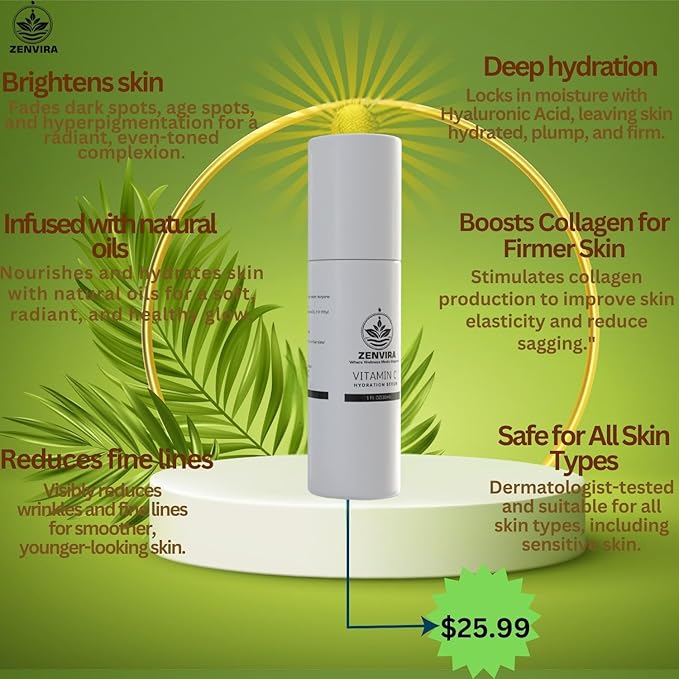 Super Vitamin C serum by Zenvira for Mature Skin – Made in USA, Anti-Aging with Hyaluronic Acid & Vitamin E – Hydrates, Firms, Brightens – Targets Wrinkles, Age Spots, Fine Lines – 1 fl oz