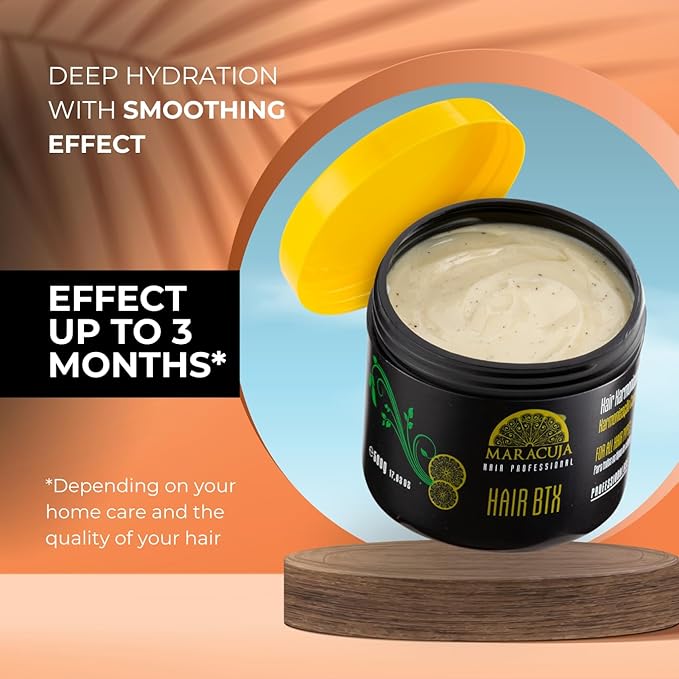 MARACUJA Hair Btx - Passion Fruit Brazilian Btx, Hair Harmonization, Anti-frizz - Intensive Treatment for all hair types, Hair Mask for Damage Repair and Control of Frizz and Volume - 17,63 oz