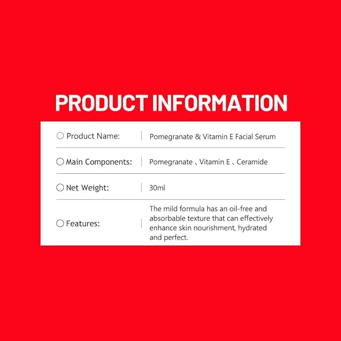 Pomegranate Vitamin E Facial Serum Anti-Aging Essence Revitalizing Face Skin Repair Refines Pores 30ml / 1.01fl.oz