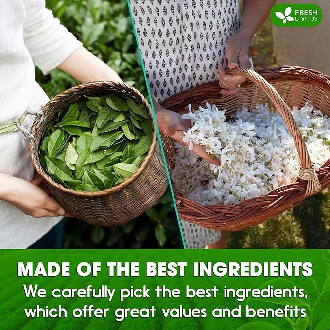 - ☘️ JASMINE GREEN TEA WITH BENEFITS: Jasmine Green Tea is renowned for its high levels of antioxidants. Enjoy the delicate and aromatic blend of green tea infused with the subtle, floral essence of Jasmine.