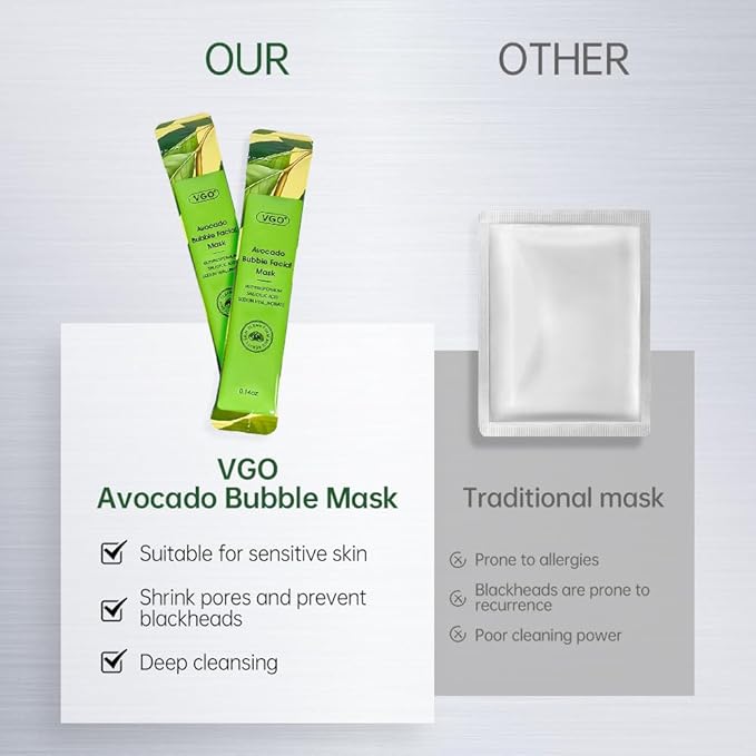 VGO Blackhead Remover Bubble Clay Mask, Deep Moisturizing & Pore Cleanser Face, with Salicylic Acid & Hyaluronic Acid,Daily Hydrating Facial Care & Skin Blackhead Mud, 12pcs (1.08 Ounce (Pack of 1))