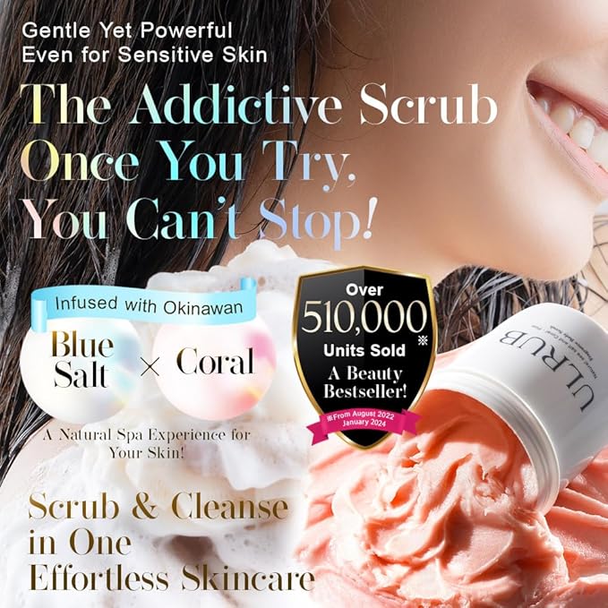- Experience the power to address dark spots, rough texture, and enhance moisture retention. Our scrub features natural coral ethically harvested from the Okinawan seabed. The coral's unique microporous structure effectively absorbs impurities and debris. This special characteristic allows ULRUB to maintain its gentle texture while providing thorough exfoliation and skin care. *Note: All coral ingredients are sourced through legally approved harvesting methods.