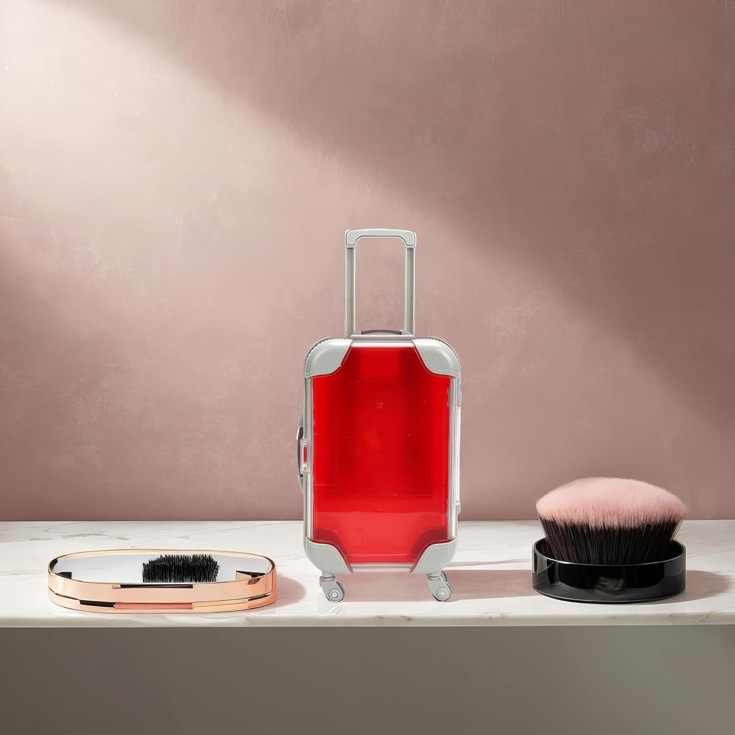 False Eyelash Storage Box, Portable Travel Organizer Mini Luggage False Eyelash Tray Makeup Tool (RED)