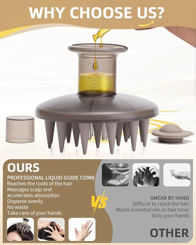 - 【Easy to Apply】With a large capacity 14ml oil compartment, simply fill the applicator with your favorite hair oil serum medicated liquid and the massage teeth effortlessly disperses the product, providing a relaxing massage experience without the need to touch the liquid with your hands.