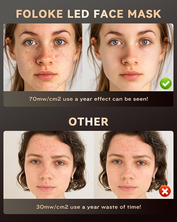- ❤️【Facial Red Light Therapy】FOLOKE Light Therapy Mask LED Facial Mask Red light 630nm and Near Red light 830nm are the best combination of wavelengths for treatment, Red light is visible light and Near Red light is invisible light, which can emit different wavelengths of light for different types of skin. When using it, you can choose the wavelength that suits you.