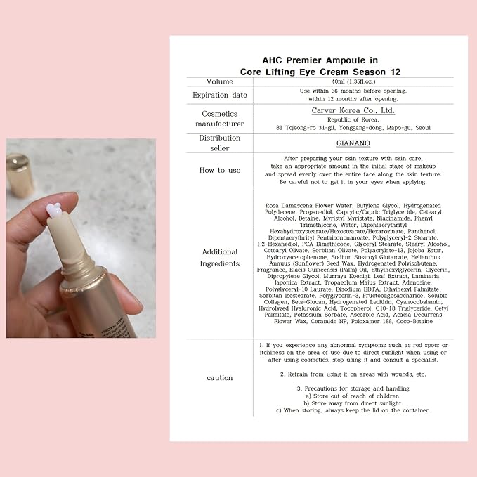 Quick moisturizing charge, Deep nutrition eye cream For AHC Premier Ampoule in Core Lifting Eye Cream Season12, 40ml (4 SET)