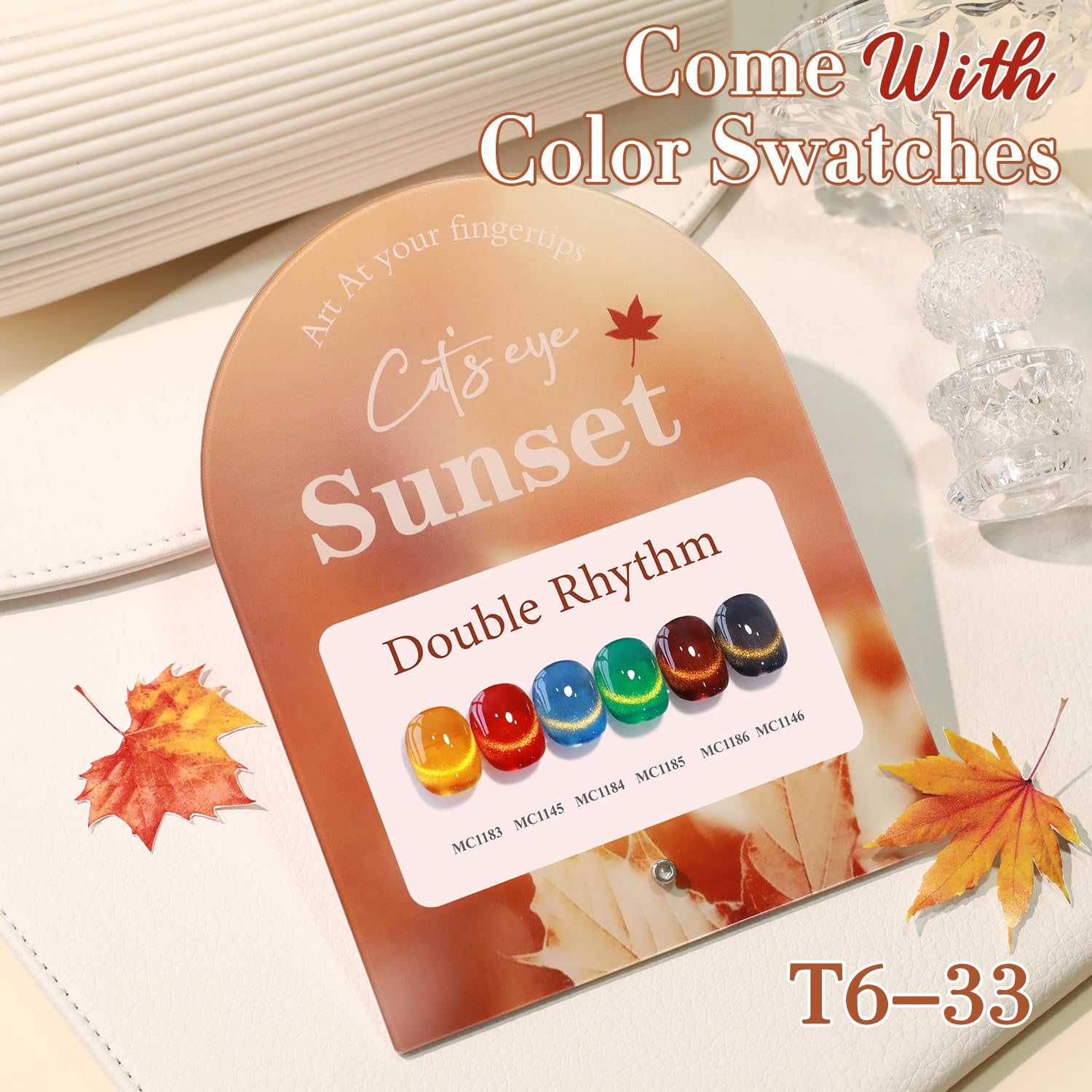 - 6 Pcs Same Color Same Bottle Gel Polish: 6pcs 15ml cat eye gel polish for all season, will come with color swatches.These gel polish kit need to be cured under UV or LED Lamp for 60-120s. Must apply with Base Gel and Top Coat. Please shake the bottle or warm it with hot water before use, to acheive a better effect.
