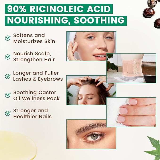 - Enhance Your Beauty Routine: From moisturizing to strengthening, our castor oil can be used in various ways to boost overall beauty. Add it to your daily skincare routine for healthier-looking skin and hair, fuller brows, longer lashes and stronger nails