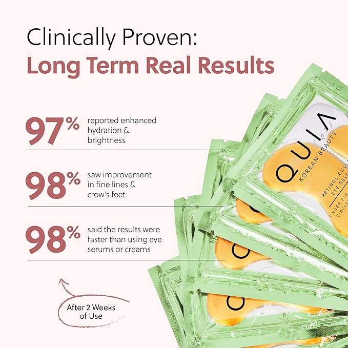 QUIA Collagen Eye Patches – Instantly De-Puff & Brighten Under-Eyes – No-Slip Hydrating Masks for Dark Circles, Eye Bags & Fine Lines – Infused with Hyaluronic Acid & Collagen – 20 Pairs
