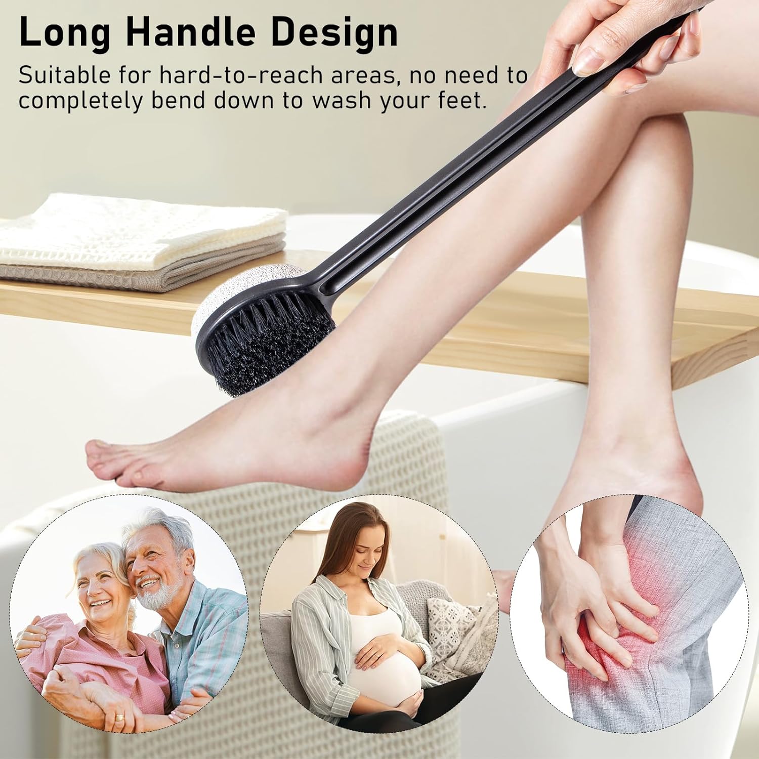 - 2-in-1 Design: This foot scrubber combines a pumice stone and shower brush for deep cleansing and exfoliation of dry, calloused skin